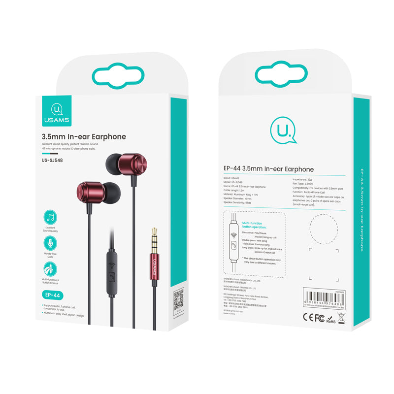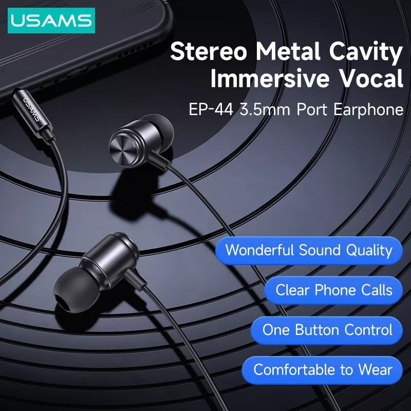USAMS EP-44 3,5mm Metall In-Ear Kopfhörer – HiFi Stereo, Aluminium Legierung, Button Control