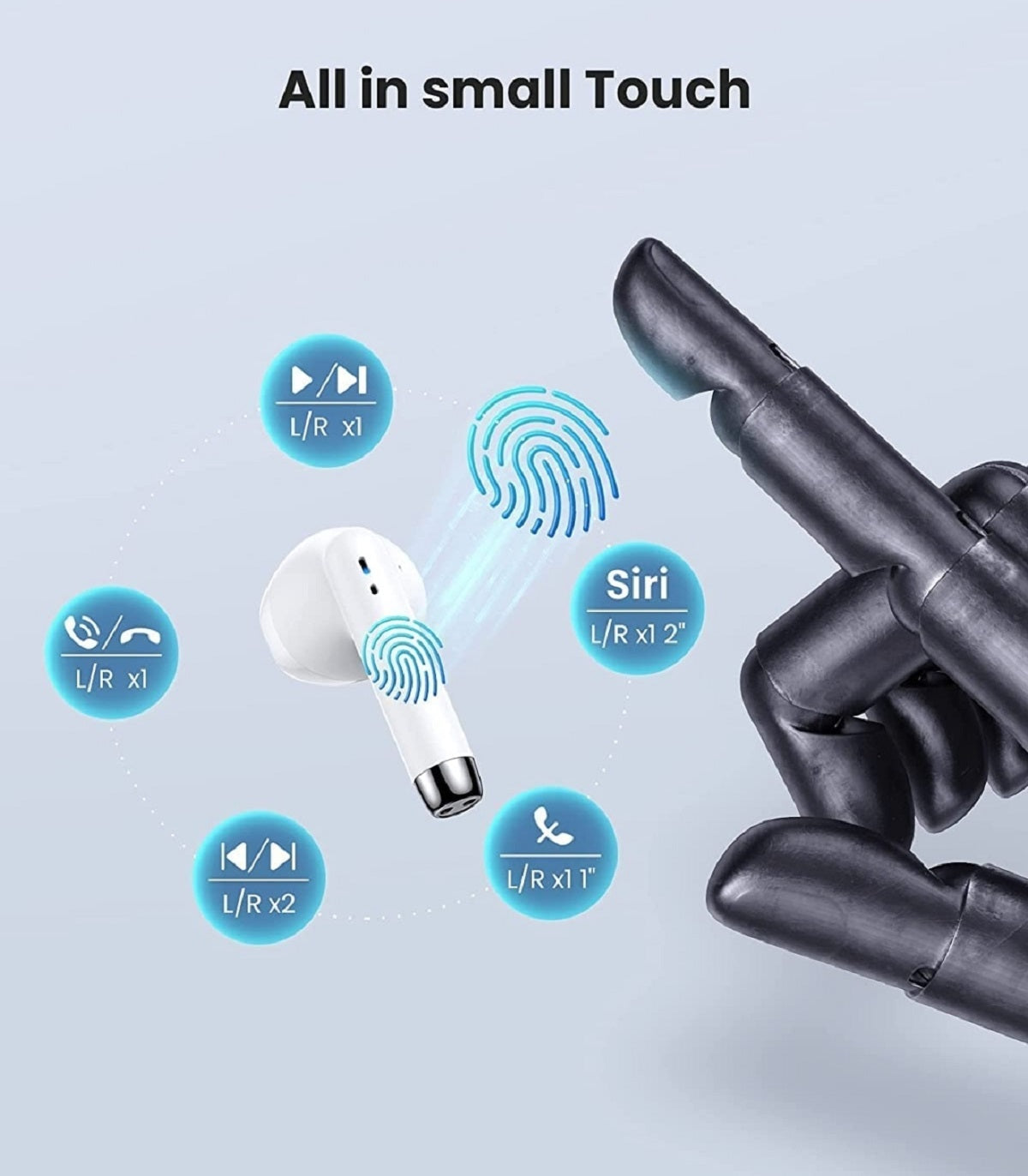 Verbesserte touch control, unterstützung links, rechts, oder sowohl ohrhörer, genießen wunderbare musik.