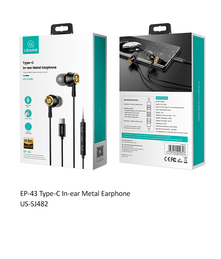USAMS US-SJ482 Typ-C In-Ear-Kopfhörer – HiFi-Sound und Komfort