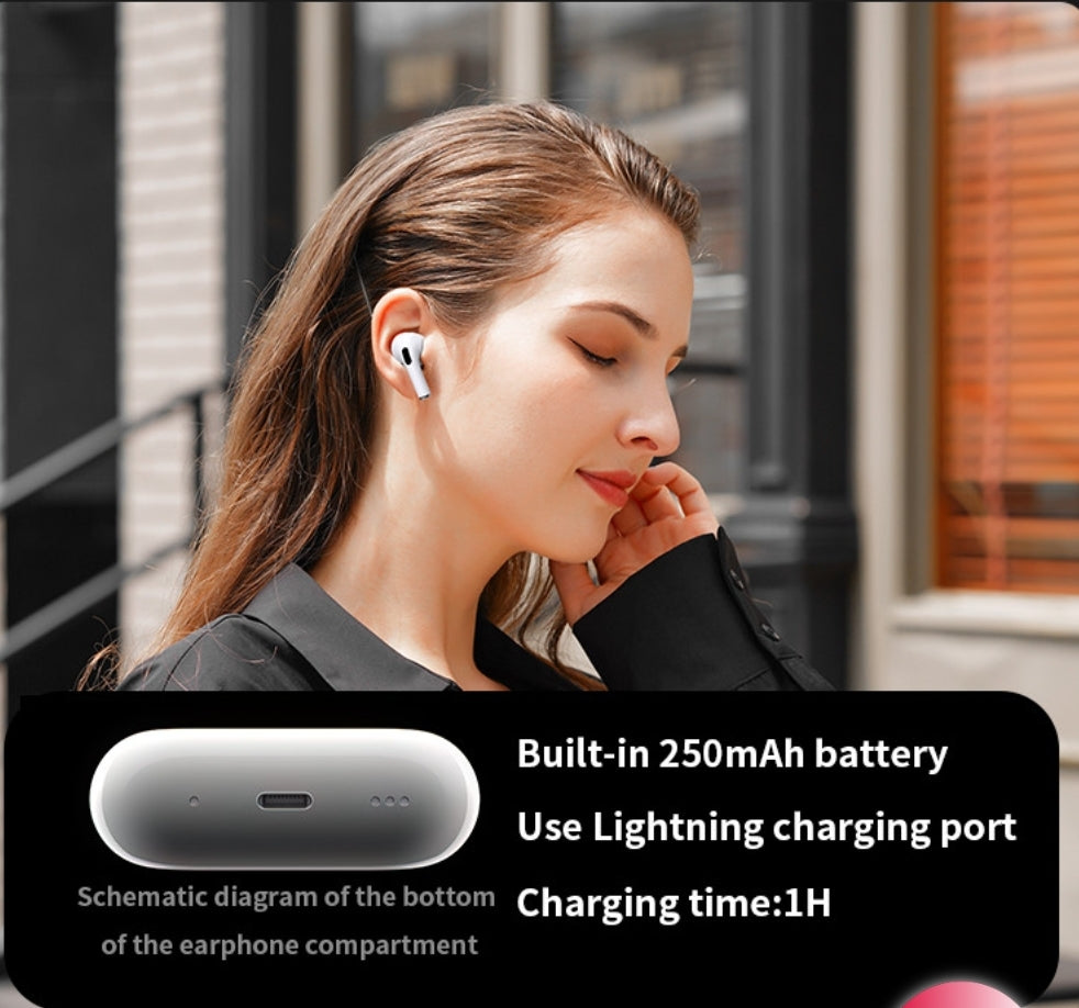 Lange Akkulaufzeit – 28 mAh pro Ohrhörer, 300 mAh Ladecase