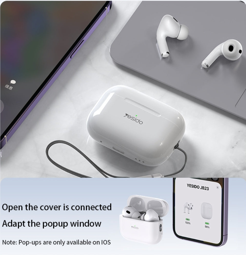 Die Yesido JB23 TWS Kopfhörer kombinieren modernes Design mit neuester Technik. Mit Bluetooth 5.3, kabellosem Laden und einem hochwertigen JL6973 Chip bieten sie eine zuverlässige Verbindung, klare Klangqualität und maximalen Tragekomfort – ideal für den Alltag, Sport oder auf Reisen.