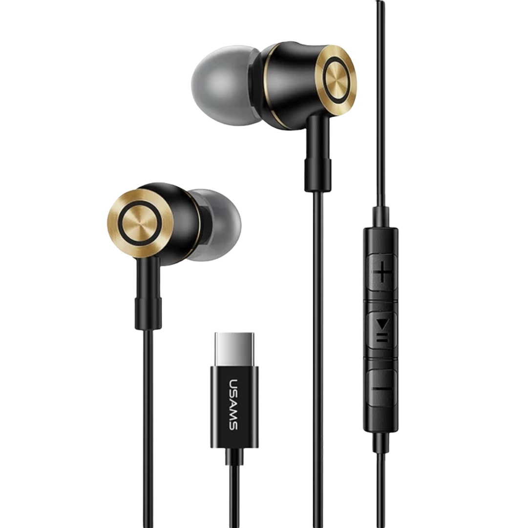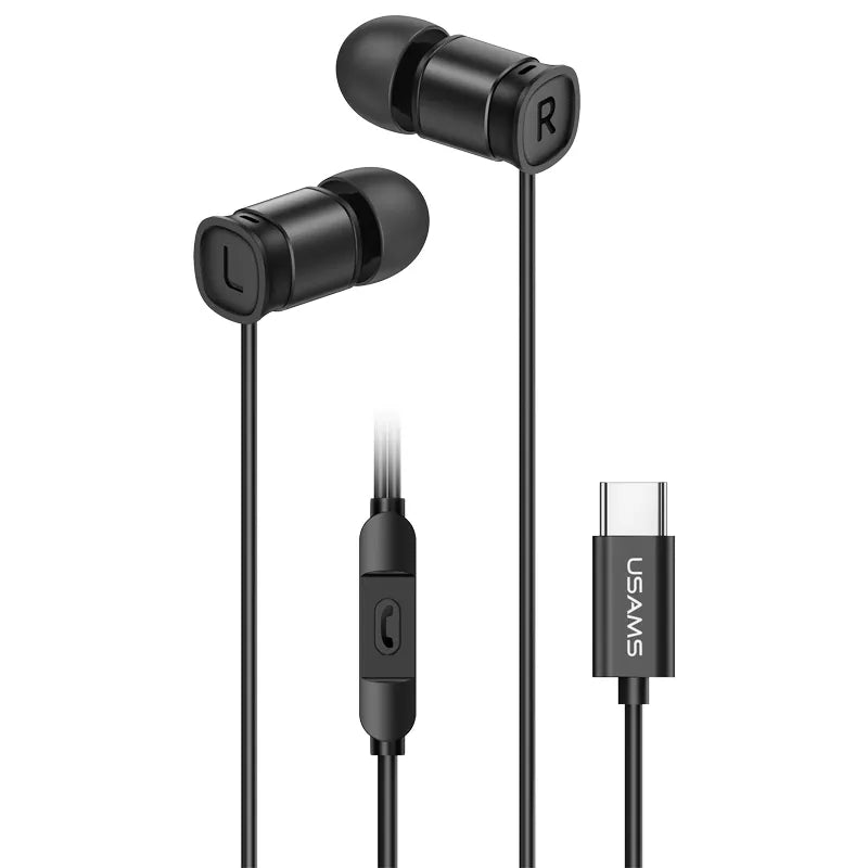 USAMS Kopfhörer In Ear Ohrhörer USB Typ C mit Fernbedienung und Mikrofon - Schwarz