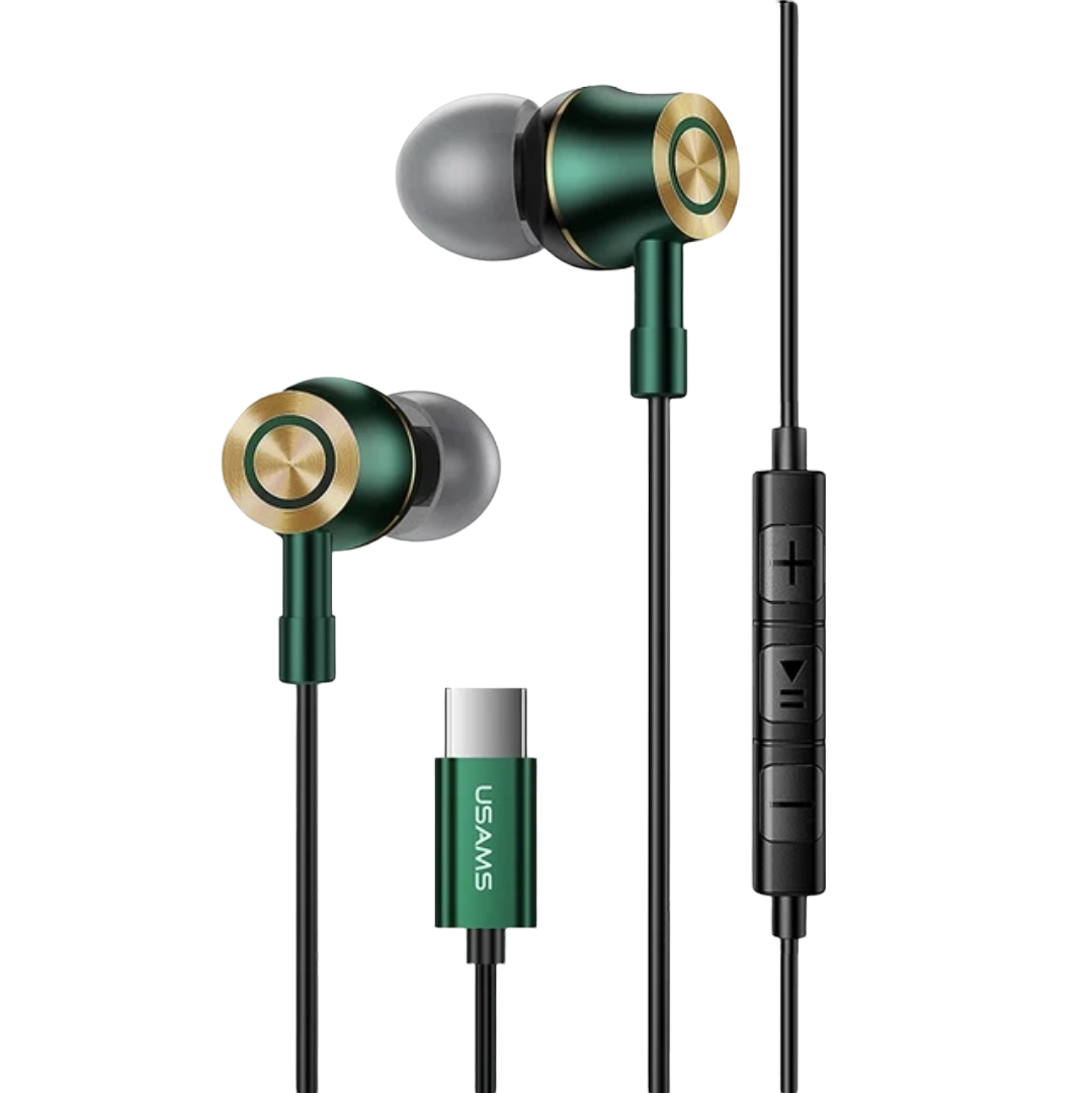 USAMS Kopfhörer In Ear Ohrhörer USB Typ C mit Fernbedienung und Mikrofon - Grün