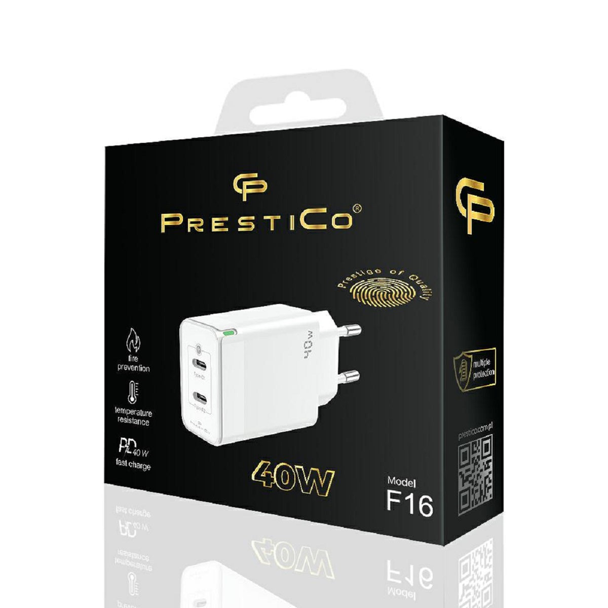 PrestiCo, F16 2xUSB-C 40W PD weiß, Universal Smartphone-Ladegerät ( Superschnelles Laden)