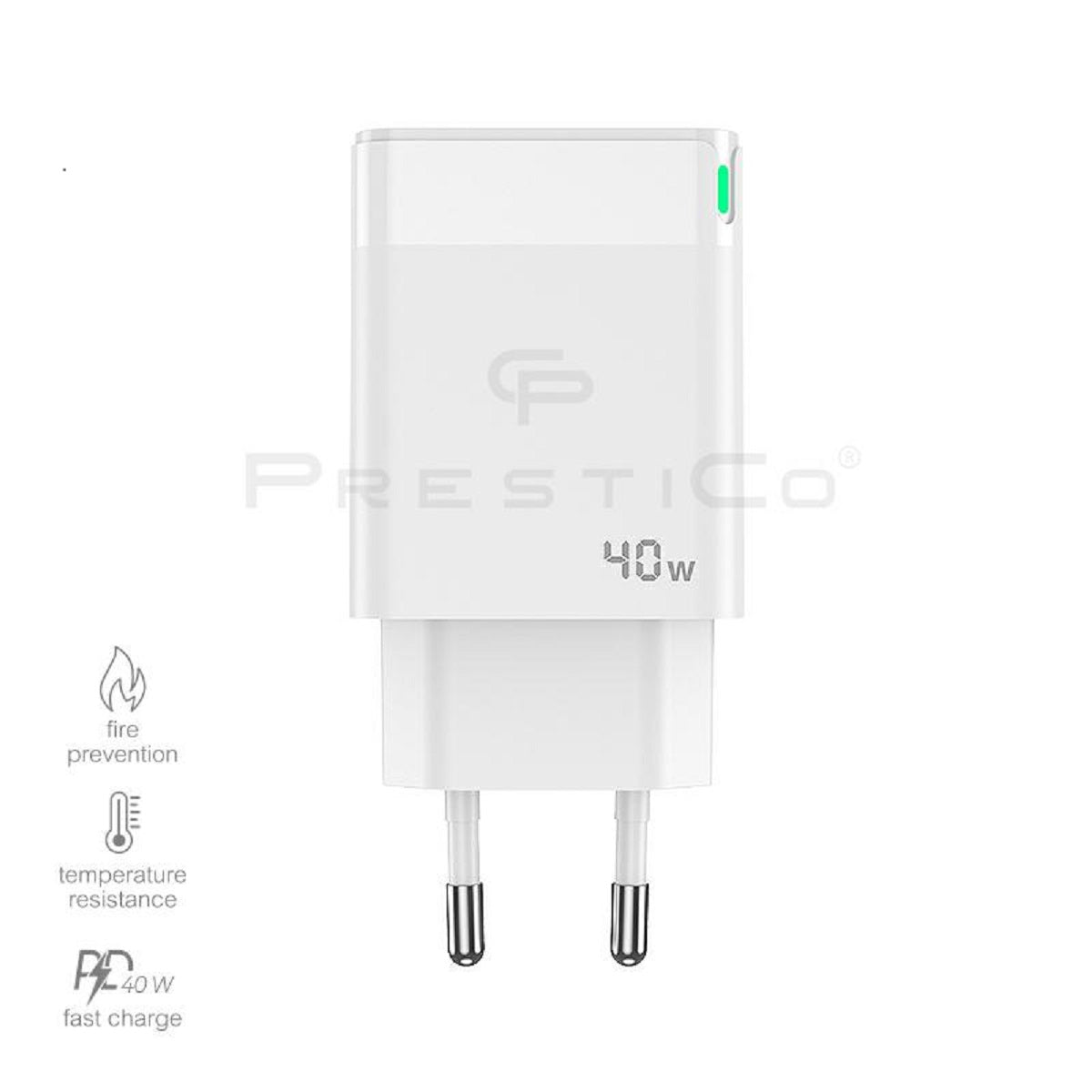 PRESTICO F16 Universal Schnellwand-Ladegerät USB Typ C / 2x USB-C 40 W Power Charge