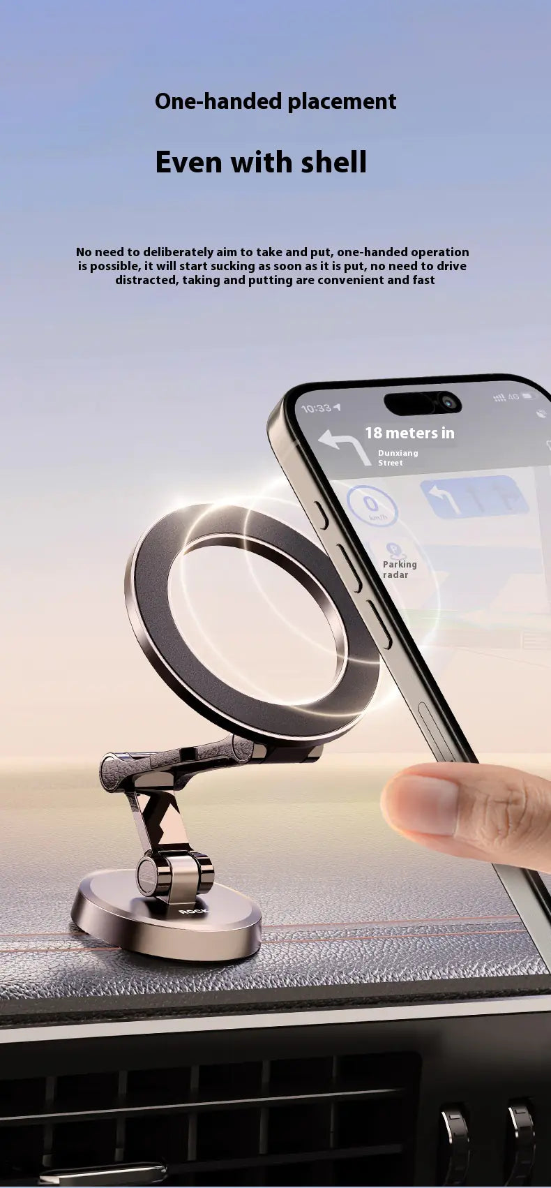 Dieser faltbare magnetische Auto-Handyhalter kombiniert starke Magnetkraft mit einem stabilen Doppelarm-Mechanismus für maximale Sicherheit während der Fahrt. Dank professioneller 3M-Klebebasis haftet der Halter zuverlässig auf dem Armaturenbrett – ohne Spuren zu hinterlassen.