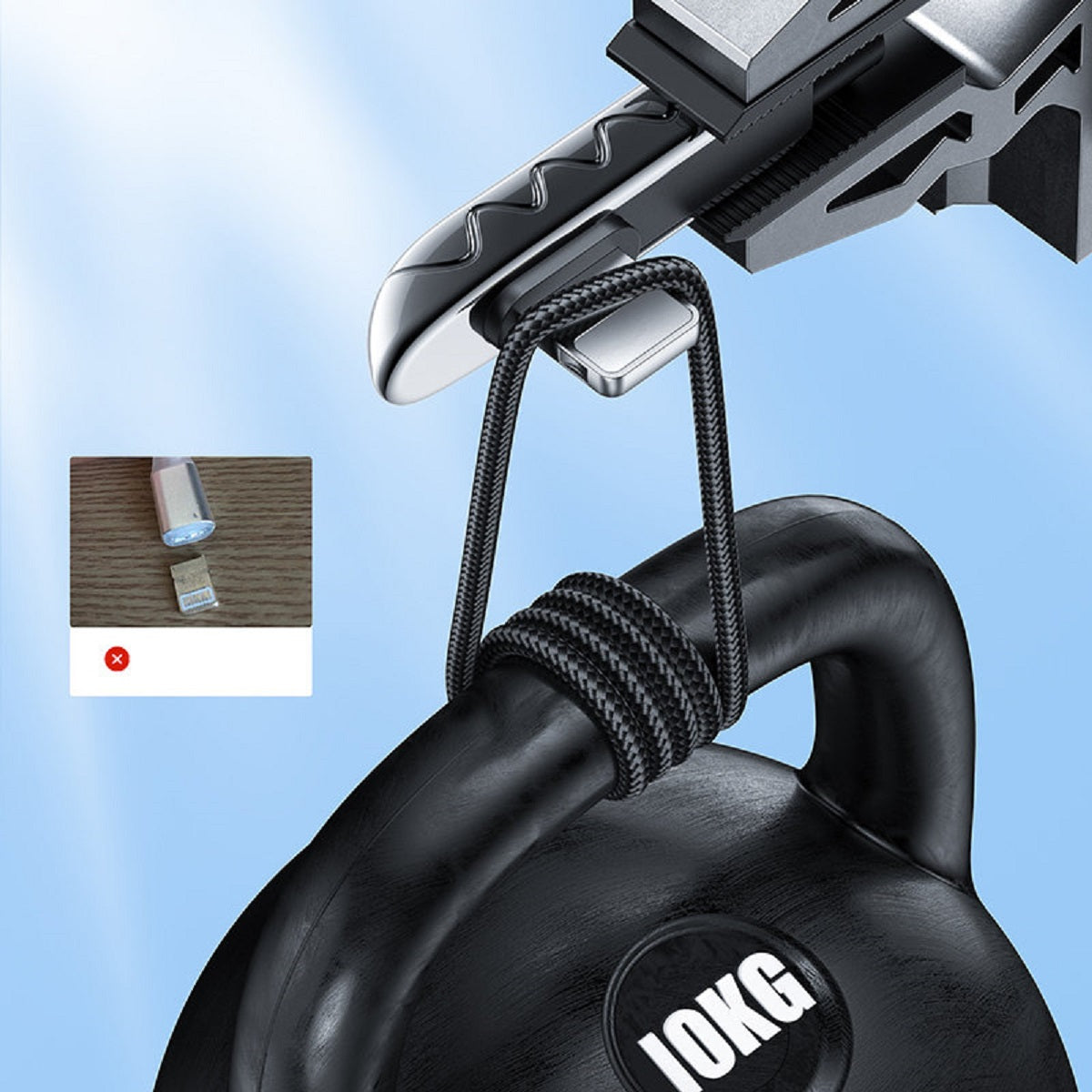 USB-Lightning-Kabel mit um 90 Grad gebogenen Steckern. Der seitliche Blitz verringert das Risiko einer Beschädigung des Kabels und erhöht den Nutzungskomfort. Das Kabel ist perfekt für Gamer, da es das Spielen Ihrer Lieblingsspiele nicht behindert. Besonders solche, bei denen das Telefon horizontal gehalten werden muss. Das Kabel besteht aus einer hochwertigen Zinklegierung, die von einem starken Nylongeflecht umhüllt ist. Das Design des Kabels und die Materialien, aus denen es hergestellt wurde, reduzieren das Verheddern des Zubehörs. Die Intensität in der Größenordnung von 2,4 A und der Kupferdraht garantieren eine schnelle und sichere Erneuerung der Energie. Ein Zubehör für alle Geräte mit Lightning-Anschluss.