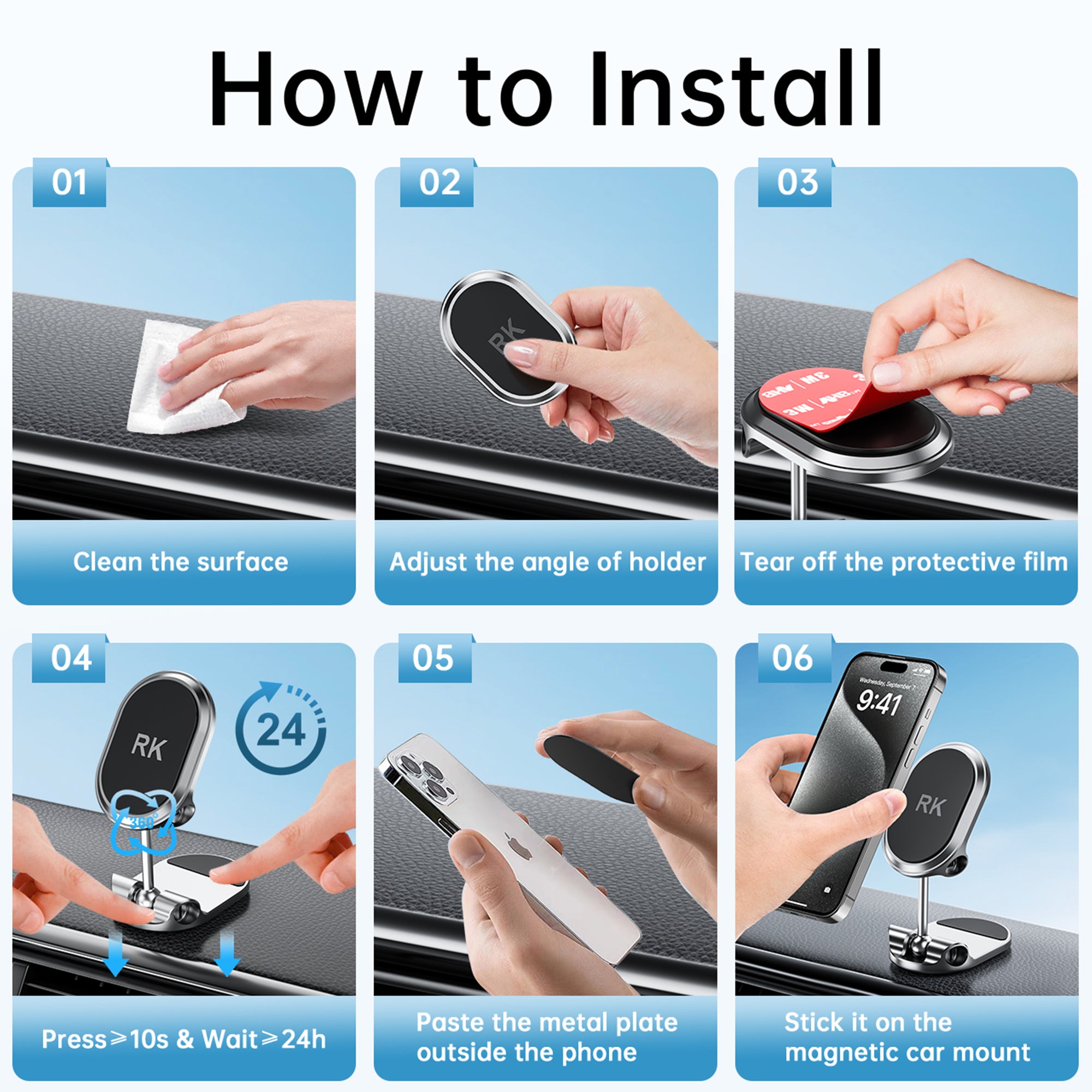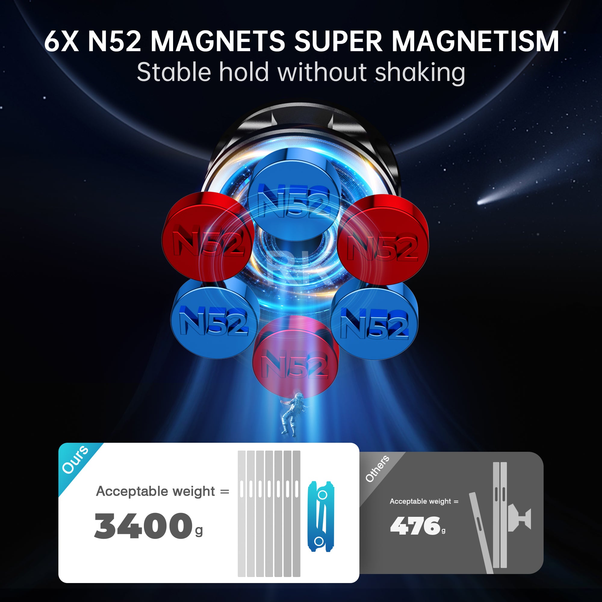 Mini Power Handyhalterung Auto Magnet (Top.1 von Magnetkraft & Fällt Nie ab) 360° Verstellbar magnetische Handy Halterung fürs Auto, Universal KFZ (Schwarz)