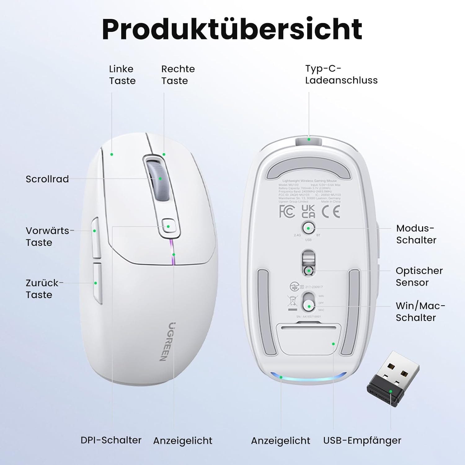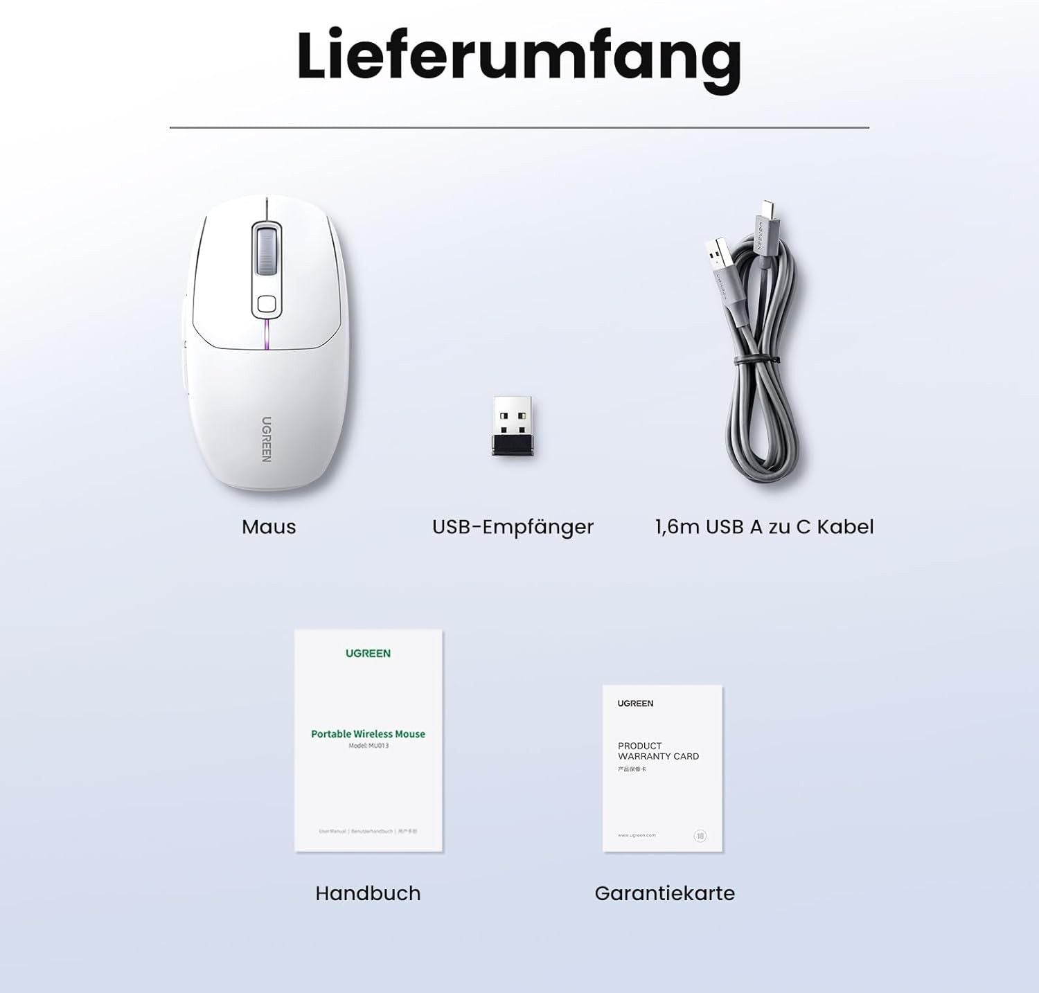 Ugreen MU103 Bluetooth 5.0 Computermaus / 2,4 GHz USB-Empfänger, Weiß