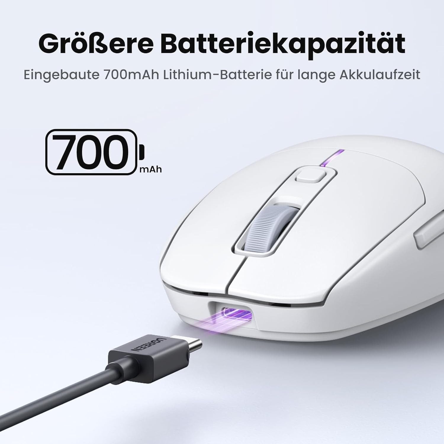 • Garantiert lange Lebensdauer. Die Maus verfügt über einen eingebauten Lithium-Akku mit einer Kapazität von 700 mAh.